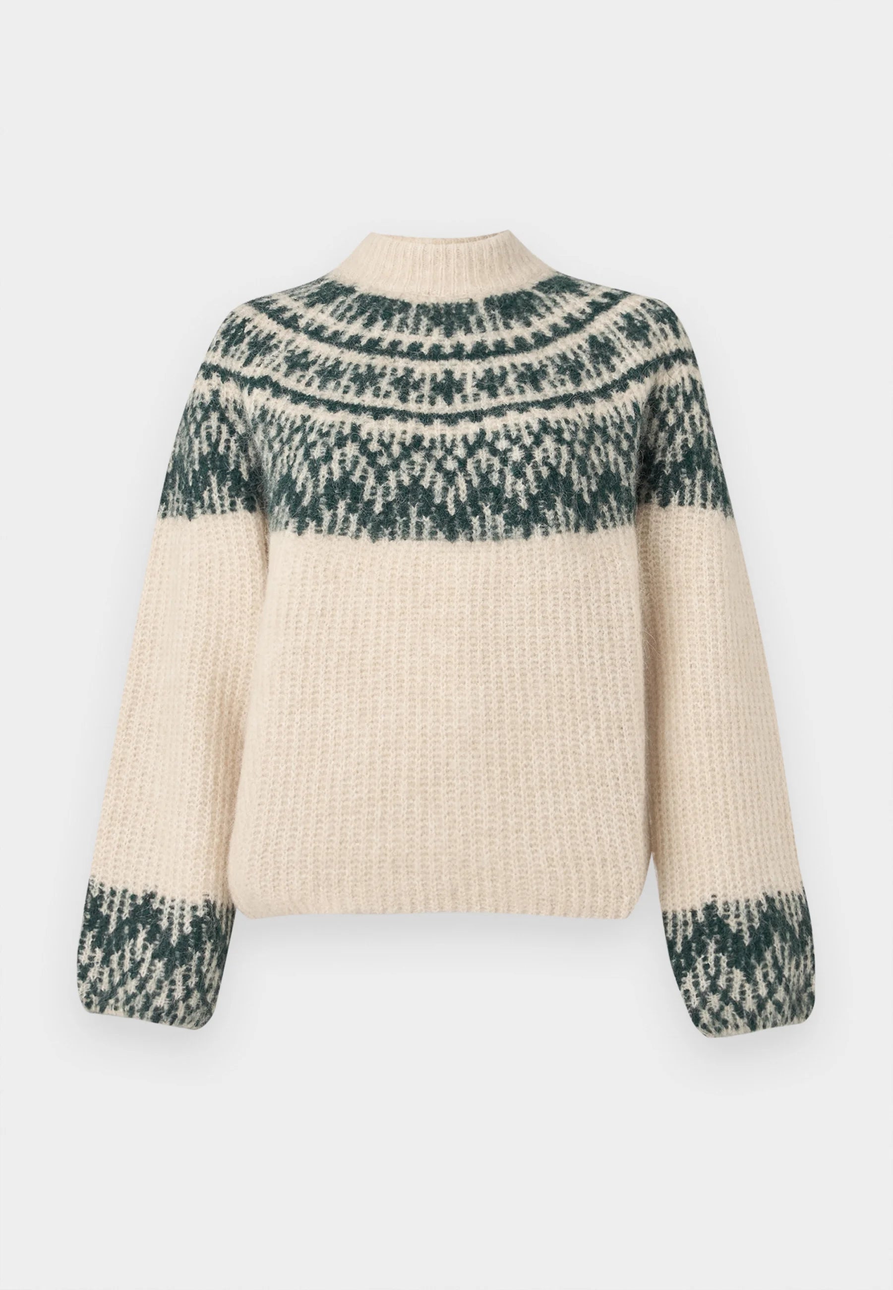 A lovely chunky wool blend jumper with green patterend details. Perfect with jeans and boots for the winter months.