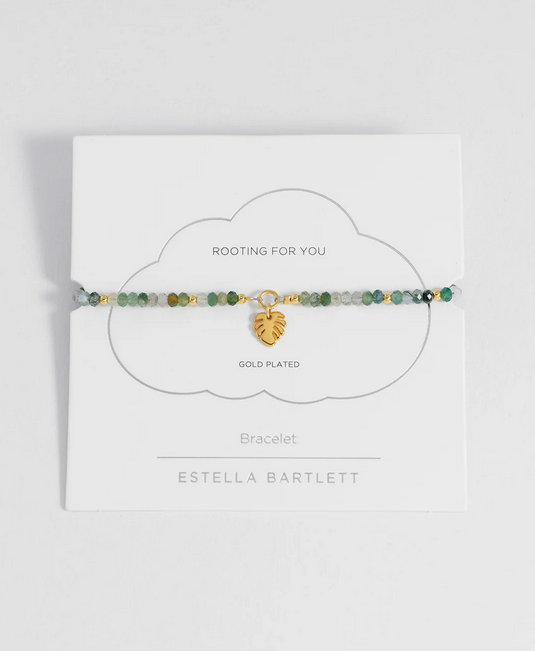 Add a touch of nature to your outfits with Estella Bartlett's gold-plated Monstera Leaf Amelia Bracelet. Featuring beautiful faceted moss agate beads in various pastel shades of green, plus a chic monstera leaf charm, this unique piece will make a great addition to your stack.