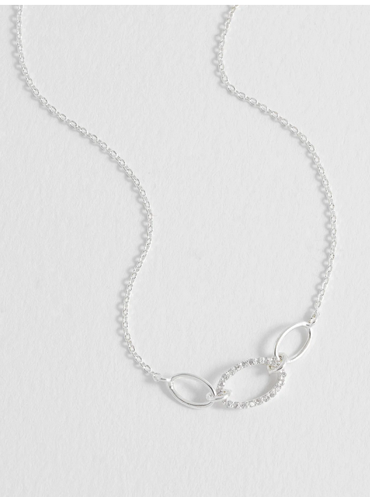 Shine bright with Estella Bartlett's silver-plated Oval Link CZ Chain Necklace. Featuring 3 oval links, one of which is studded with CZ stones, this necklace is an ideal gift for a loved one you are glad to be connected with.