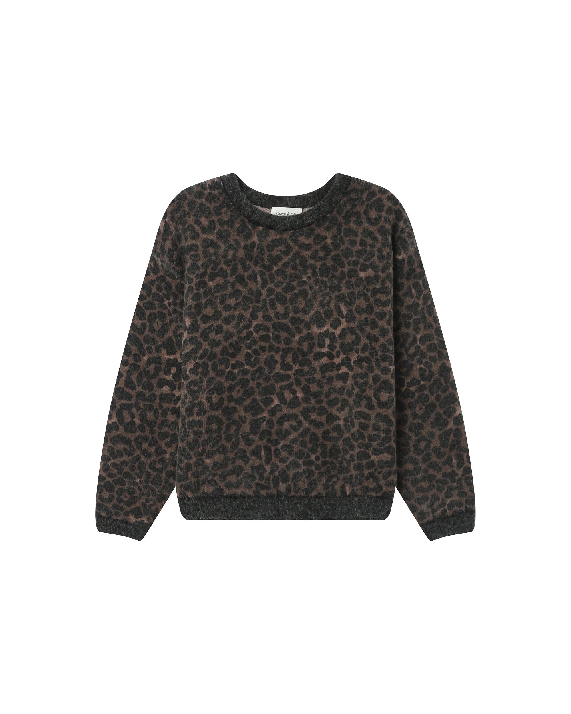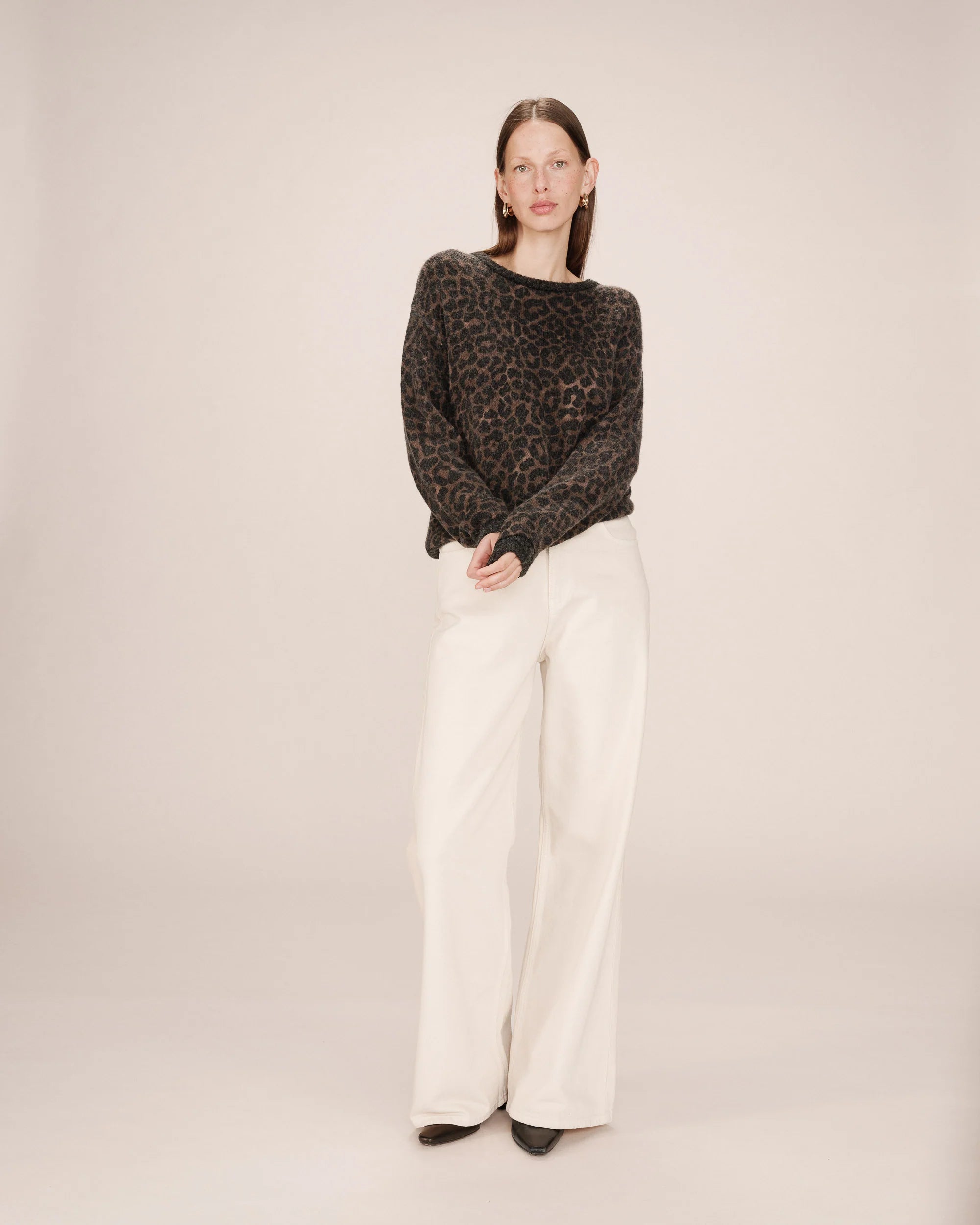 The SANTIGOLD crew neck sweater reinvents the leopard print in a casual version and fits perfectly into everyday wardrobes. Made from a mohair blend wool yarn, the SANTIGOLD leopard sweater is a warm and comfortable piece, ideal for the season. The sweater features contrasting details such as the neckline, cuffs, and hem, making it a carefully designed model.