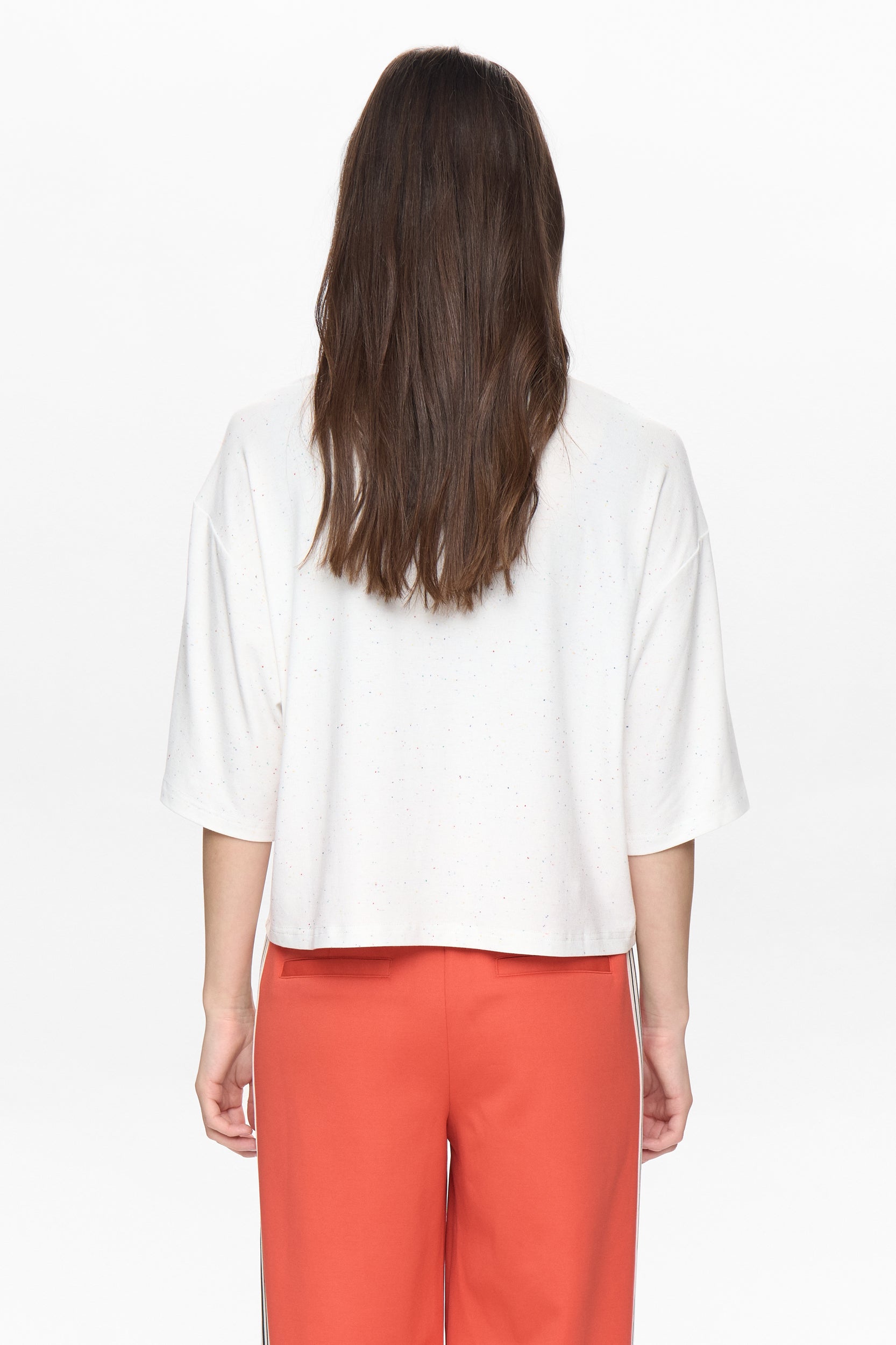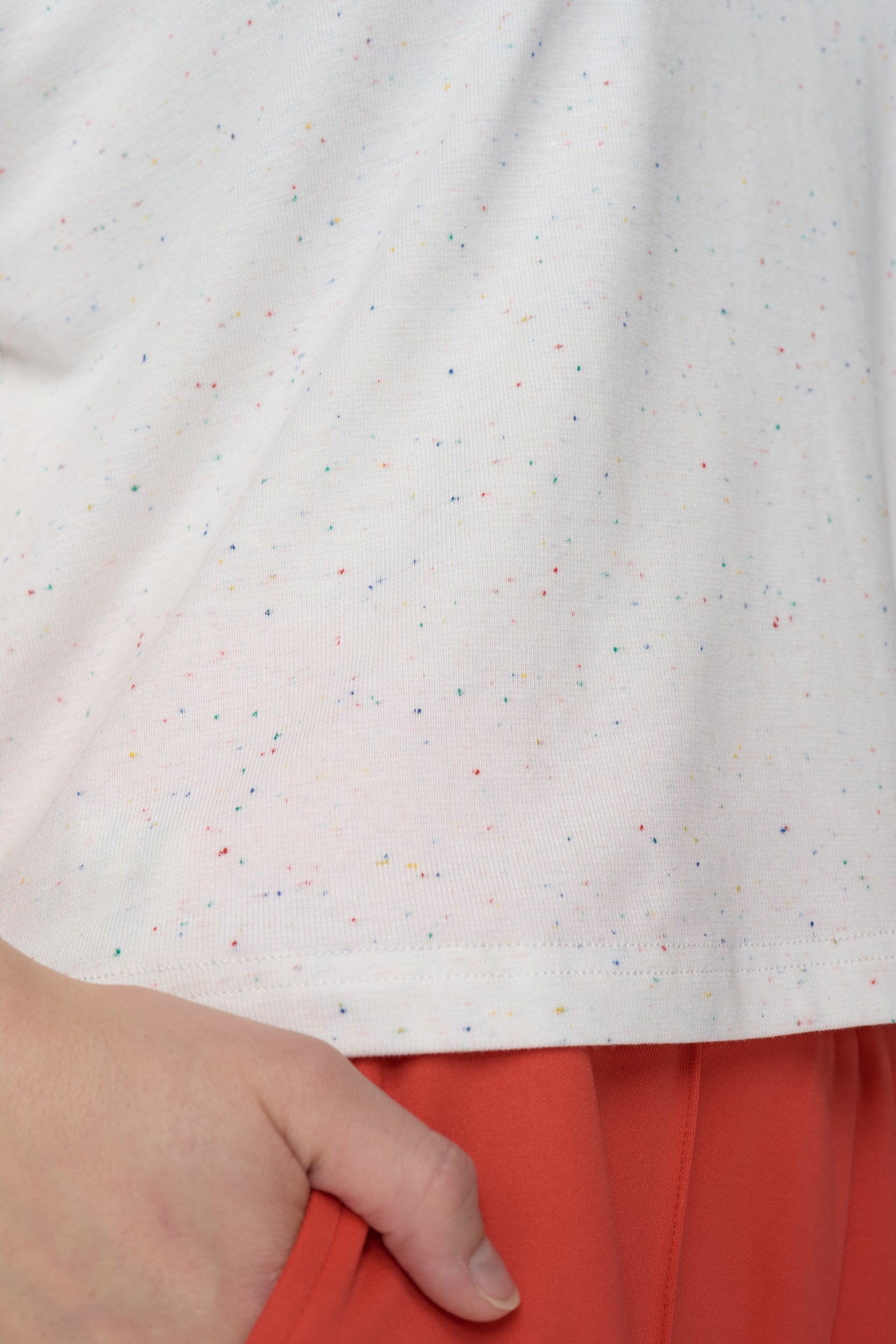 With 2/4 sleeves and a multicolour speckled effect, this piece gives your basic tee a much needed lift. Great for layering under a chunky cardigan.