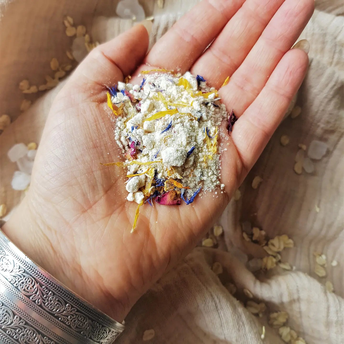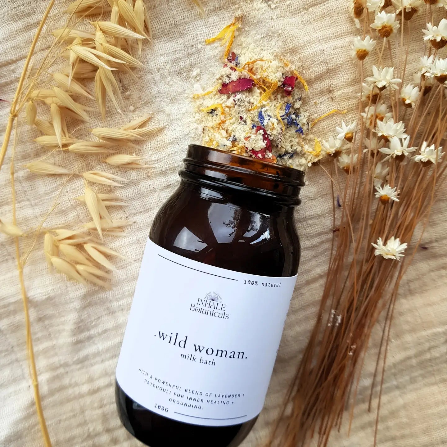Wild Woman: With a powerful blend of Lavender & Patchouli For inner healing & grounding. Abundantly moisturising & nourishing our bath milks are packed full of soothing oats & buttermilk alongside mineral rich Himalayan sea salts.