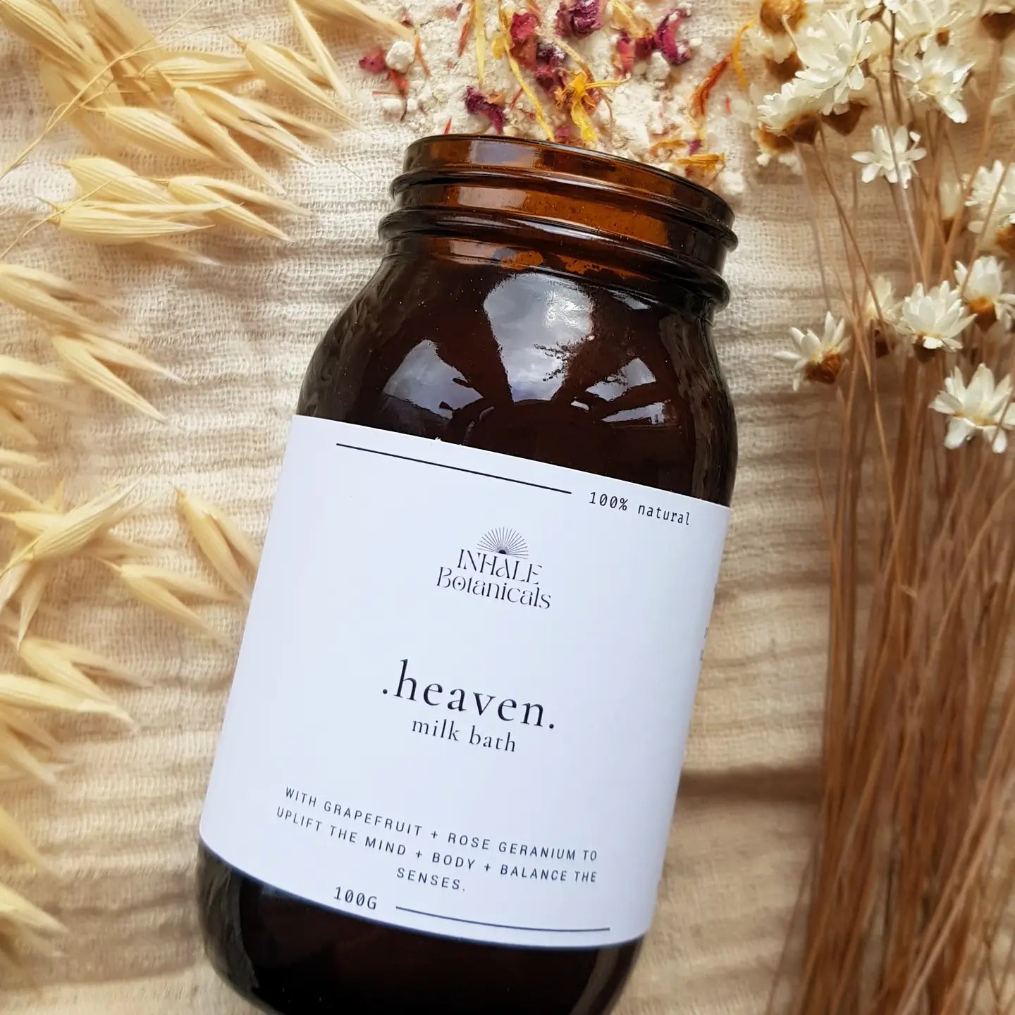 Heaven: With Grapefruit & Rose Geranium to uplift the mind & body & balance the senses. Abundantly moisturising & nourishing our bath milks are packed full of soothing oats & buttermilk alongside mineral rich Himalayan sea salts.