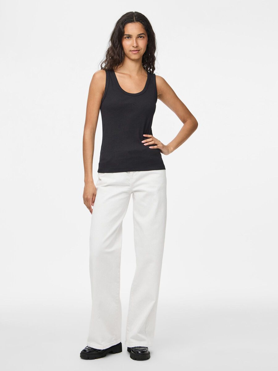 Classic off-white vest, perfect for the summer with your favourite bottoms.