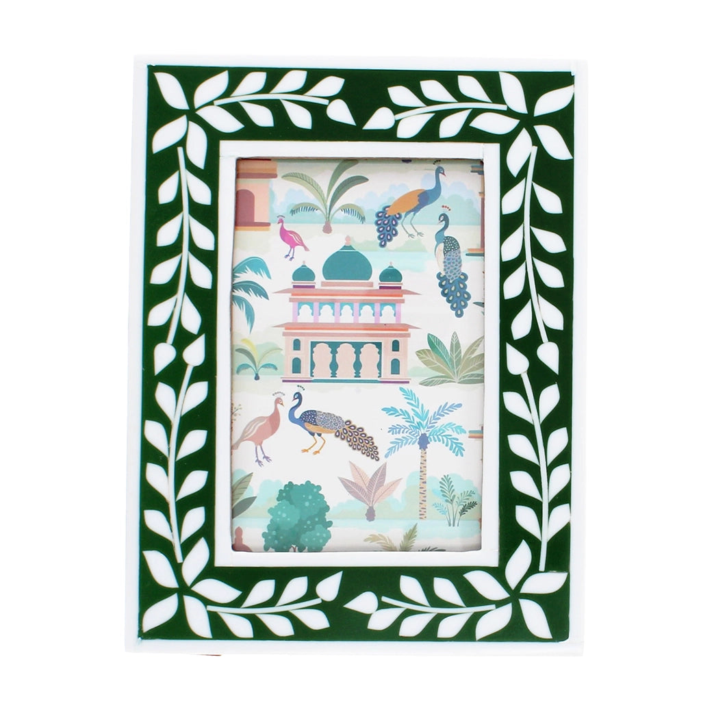 Elegant wooden frame with a decorative resin border, featuring a delicate white leaf pattern. Perfect for showcasing a treasured photo or print with a touch of nature-inspired charm.