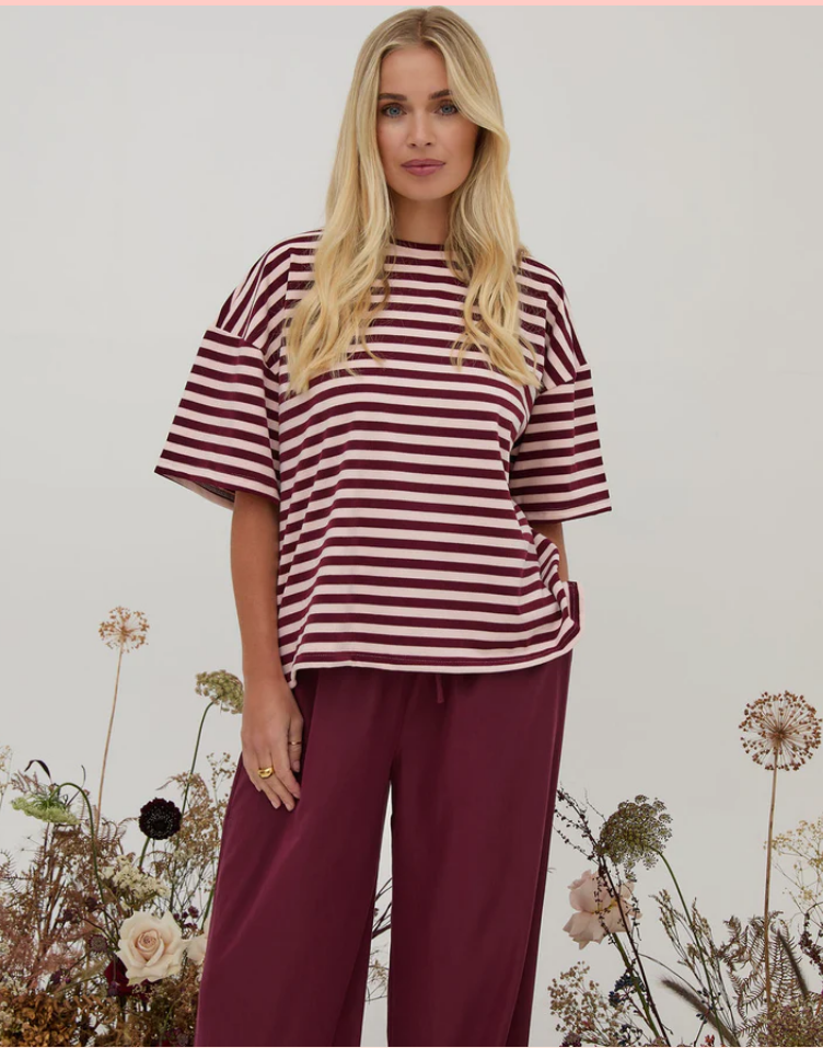 Crafted from premium, heavier-weight jersey fabric, Sara is loved for her super-soft feel, flattering fit, and versatile design. The classic stripe and relaxed A-line silhouette create a polished yet effortless look that suits every body shape and style.