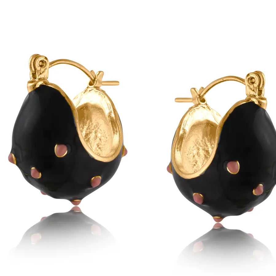 These striking two-tone earrings feature delicately coloured hues, enamelled onto brass with gold plating. The perfect way to make a statement. At least 50% of the brass we use in the jewellery make is recycled from leftover/overhead brass. All posts are hypoallergenic made from surgical steel.