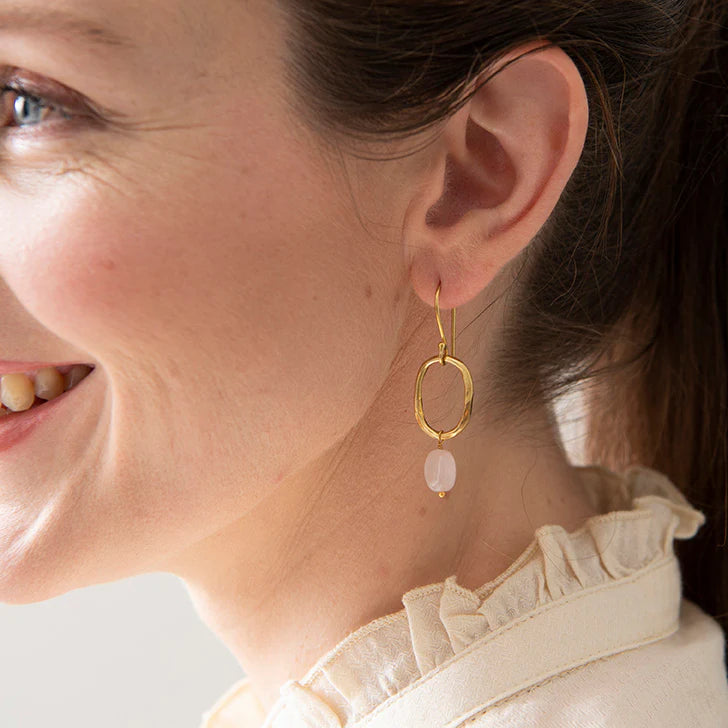 Graceful Rose Quartz Gold Plated Earrings