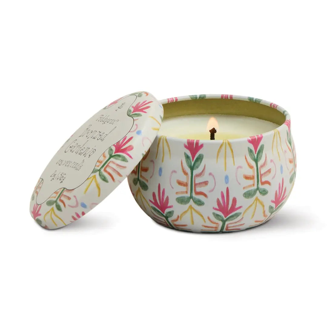 Just bloomed! These adorable tin candles are filled with fragrances inspired by springtime flowers and gardens.
